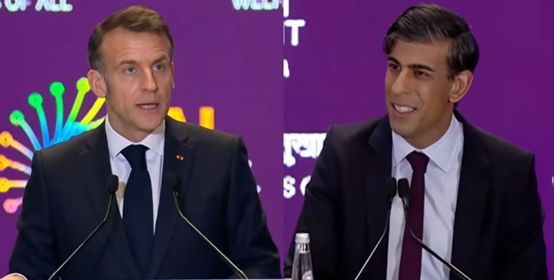 Image Source: Screenshots of Emmanuel Macron and Rishi Sunak speaking separately at the India AI Impact Summit, February 19, 2026