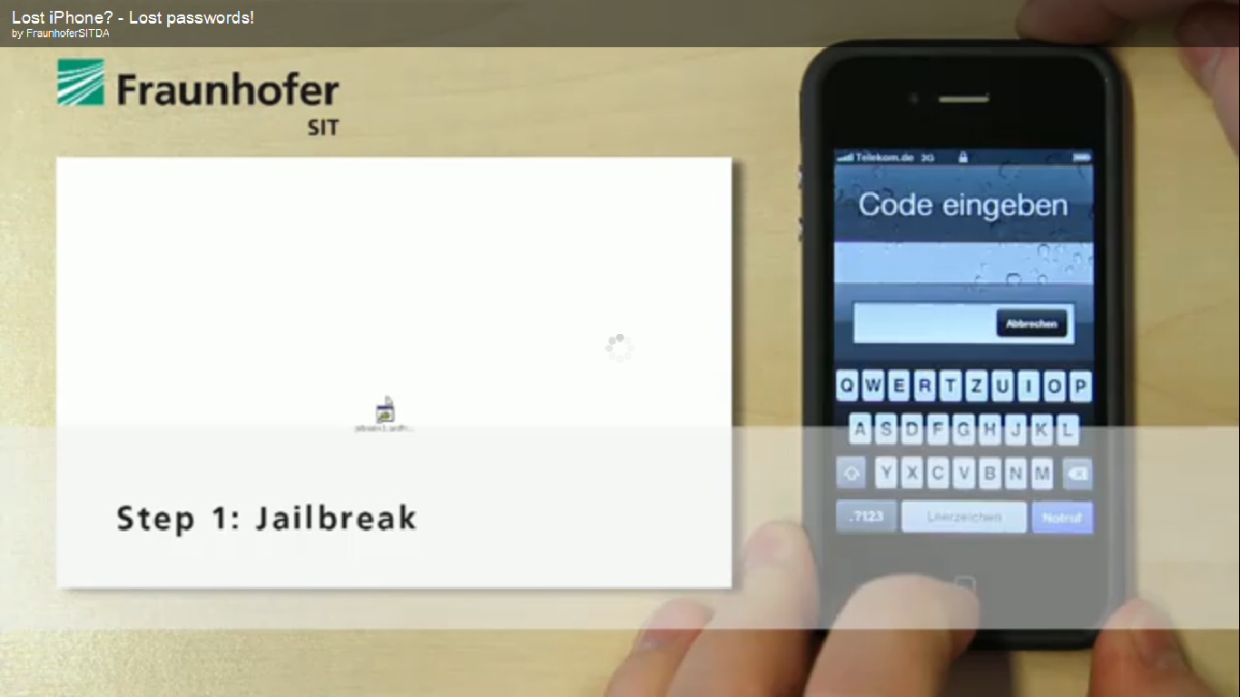 Many people think that the Smartphone device encryption will provide sufficient security. “This opinion we encountered even in companies’ security departments”, says Jens Heider, technical manager of the Fraunhofer SIT security test lab. “Our demonstration proves that this is a false assumption. We were able to crack devices with high security settings within a very short time.” The testers did not have to break the 256 bit encryption to get to the passwords stored in the devices’ keychain. A weakness in the security design was used: The underlying secret the attacked password’s encryption is based on is stored in the device’s operating system. This means that the encryption is independent from the personal password, which is actually supposed to protect the access to the device.