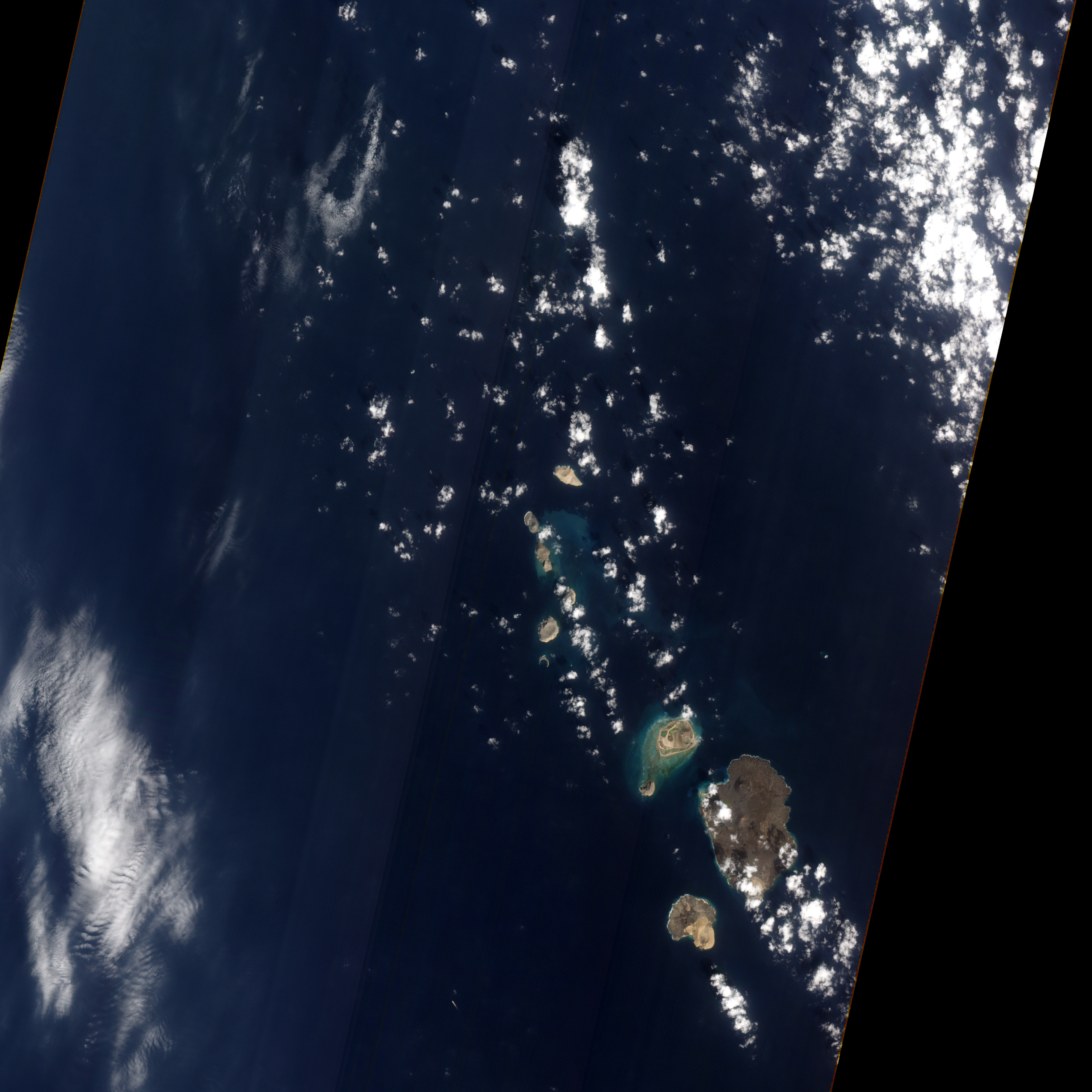 The satellite images show the new island among neighboring islands and clearly show the cinder cone at the island’s centre.