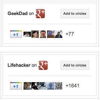 The badges operate like the Facebook Like box (which you can see on our right sidebar). In a similar way to its Facebook cousin the Google+ badge allows visitors to immediately +1/Like the brand’s Google+ profile and add it to one of their circles. (We’re seeing early reports that individuals can also use the badge to encourage users to follow their personal Google+ accounts.)
