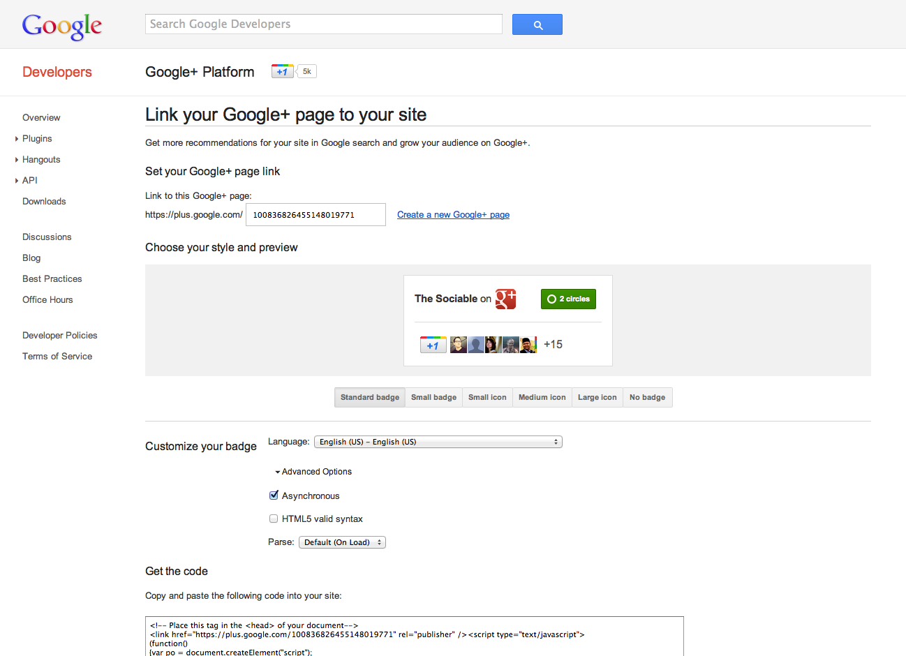 But wait! Setting up the badge is not so straight forward. In order to include it on your site Google+ first requires you (at the time of writing) to sign up to the Google+ preview group (which you can do here).