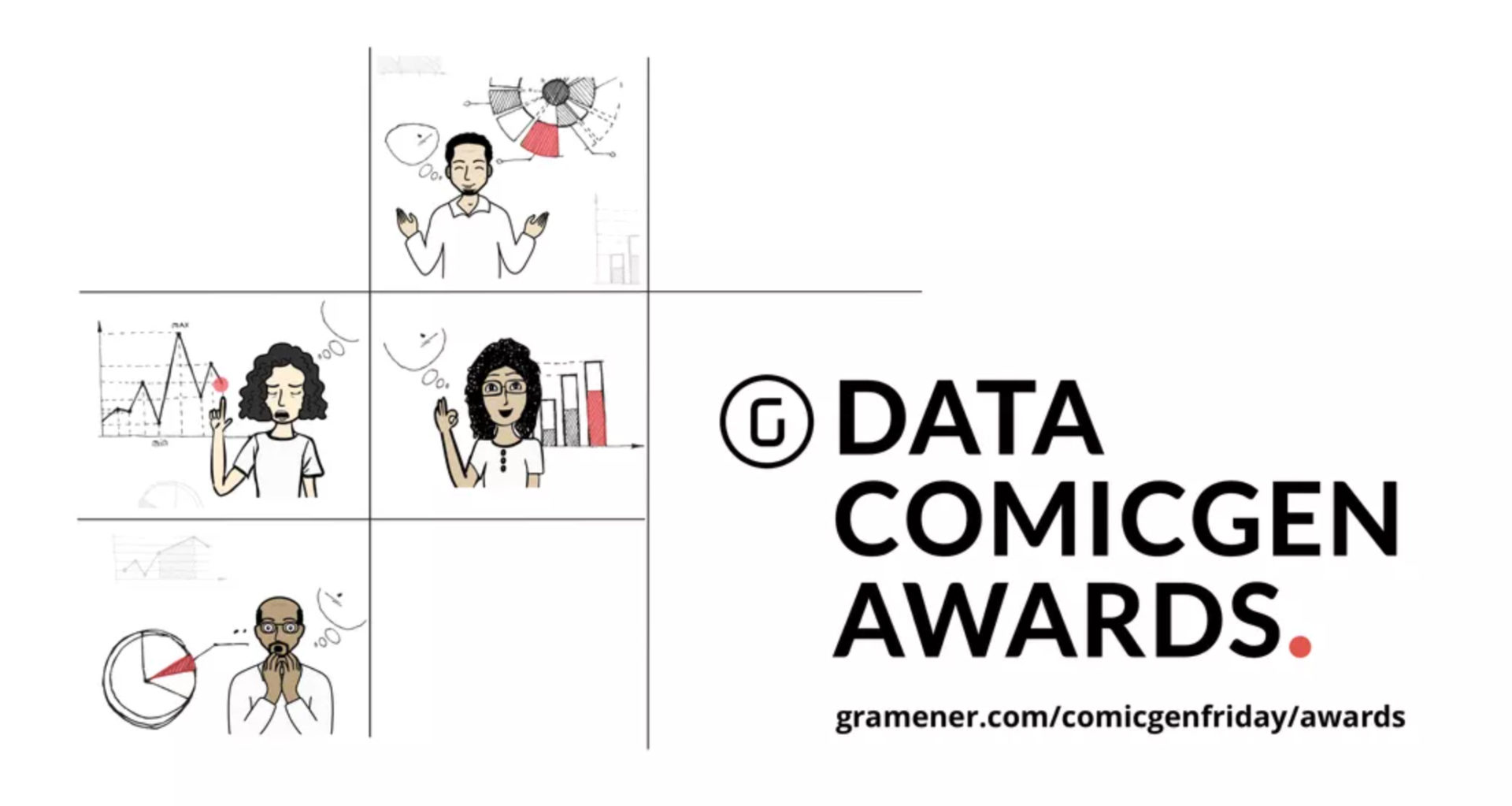 The DataComic Gen Awards jury is comprised of popular experts from the data community, namely Alli Torban, Duncan Geere, Gurman Bhatia and Kat Greenbrook, who are analyzing submissions according to criteria like clarity of message, visual and textual aesthetics, storyline and script, and principles of data visualisation.